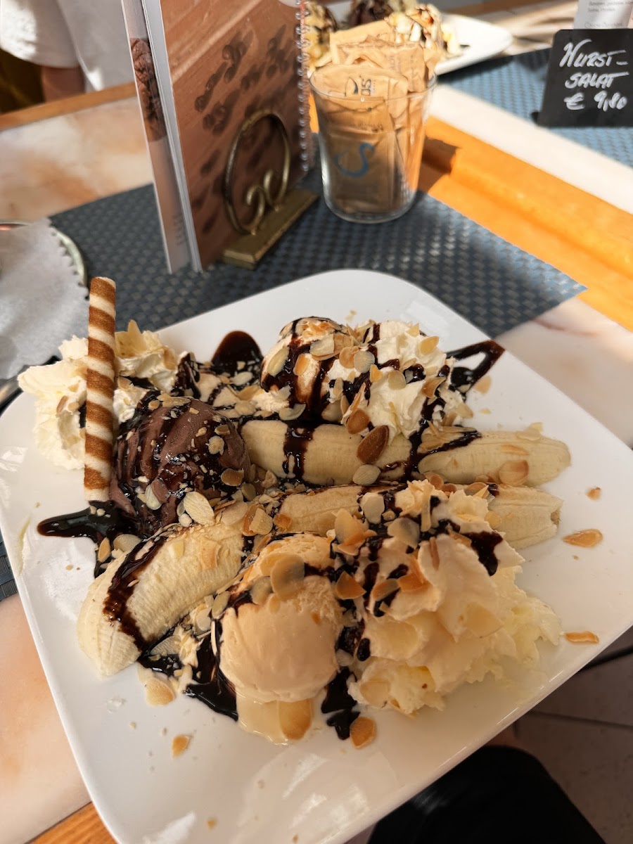 The beverages at Café Sitzwohl also garner much love. Daniela Liebert shares her delight in the great taste of their refreshing soft drinks and the signature 'Hugo' cocktail, which provides a burst of flavor. The beautifully presented ice cream desserts, adorned with stunning garnishes, like edible flowers, are equally impressive, making them visually appealing and deliciously satisfying.